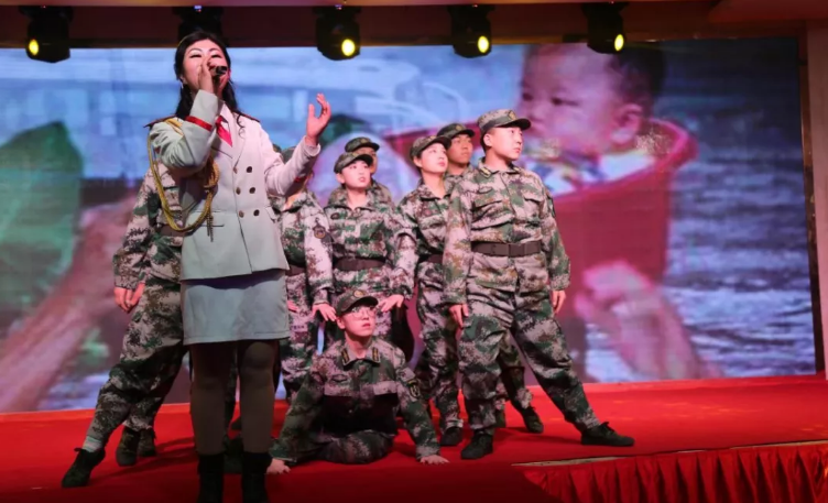 情景劇《天亮了》拉開了第二篇章的序幕,整個節目以軍裝為主色。該作品以剛柔結合的舞蹈,優美動人的歌聲,配合舞臺燈光效果,氣勢恢宏,極具視覺沖擊效果,將晚會氛圍引向高潮,獲得了一陣又一陣的掌聲,贏得了現場領導和所有觀眾的一致好評。